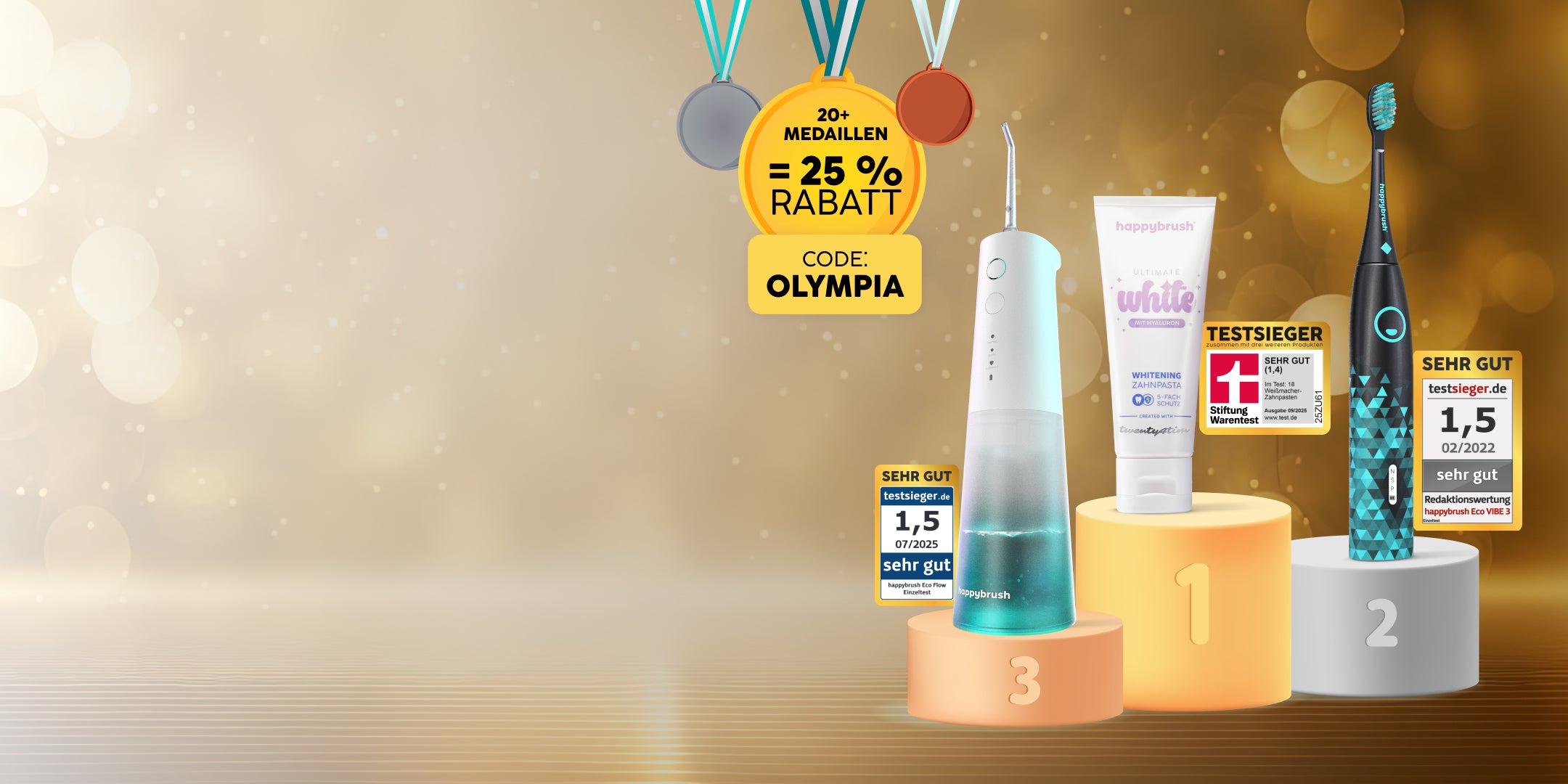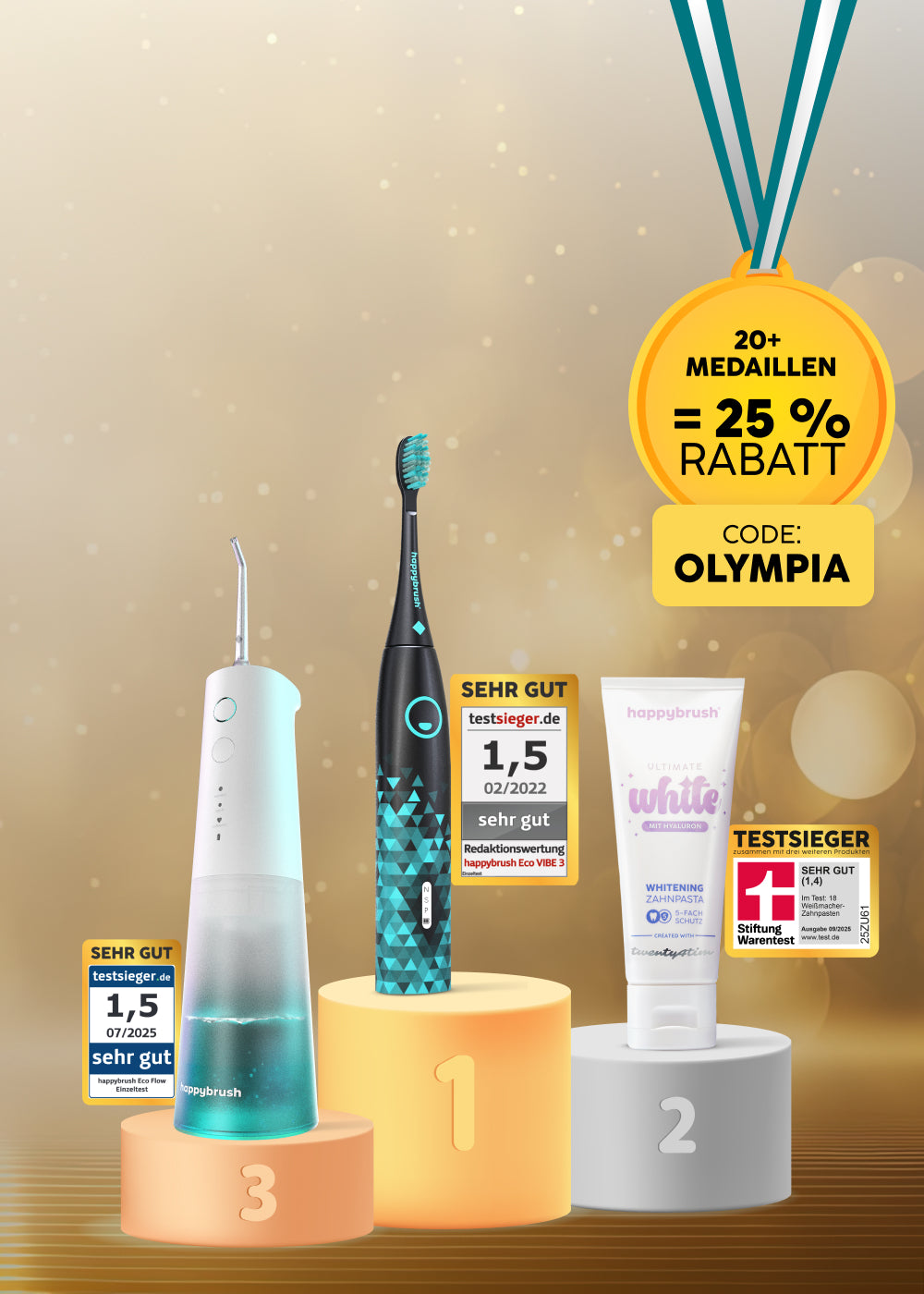 "Wenn Öko-Test oder Stiftung Warentest Zahnbürsten, Mundspülungen oder Pasten vergleichen, spielt happybrush oft im Spitzenfeld mit. Dazu kommen Auszeichnungen wie der Deutsche Gründerpreis."