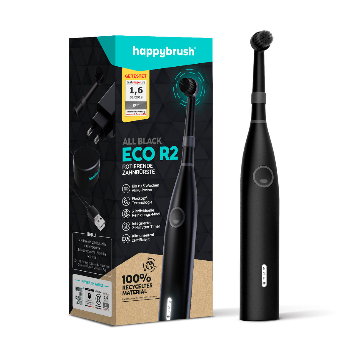Ökotest zeichnet die rotierende Zahnbürste R2 von happybrush als Testsieger mit der Note "sehr gut" unter den rotierenden Zahnbürsten im aktuellen Test 12/2021 aus! Sie erhielt in allen getesteten Kategorien hervorragende Bewertungen, darunter die Technologie der Batterie, die Qualität der abgerundeten Borsten, Laufzeit und Schadstofffreiheit.