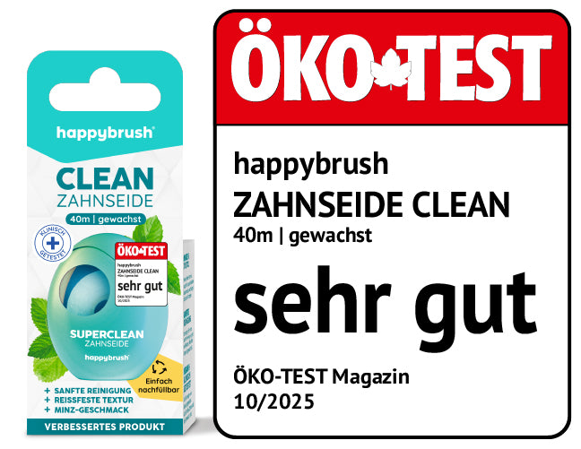 Öko-Test hatte 54 Zahnseiden getestet, darunter auch unsere SuperClean Zahnseide, welche mit der Note Sehr gut bewertet wurde.